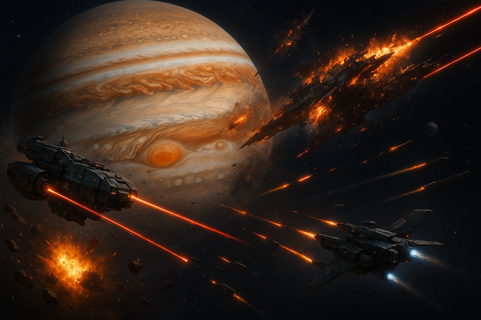 펜타 파괴 후, 화성 연합은 달 기지를 중심으로 세력을 확장했다. 그러나 목성 동맹은 소행성대 통제권을 놓고 전투함을 파견해 ‘아레스 작전’을 개시했다. 이 작전은 목성 궤도 근처에서 대규모 우주전투로 이어졌으며, 소행성 파편이 전투기의 요격 미사일로 활용되었다. 그때 파편 하나가 초고속으로 돌진해 함교를 관통한 일화는 지금도 전설처럼 전해진다.