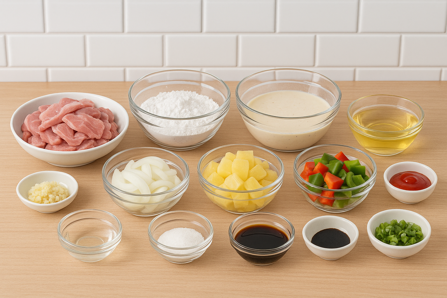 - 소스 재료: 케첩 3큰술, 식초 2큰술, 설탕 2큰술, 간장 1큰술, 물 100ml, 녹말물(물 1큰술+녹말 1큰술)