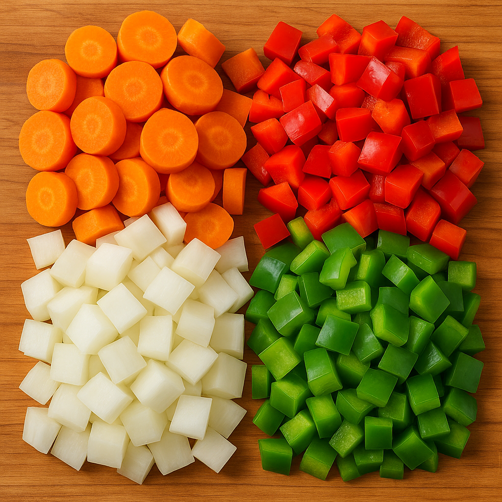 - 채소: 양파(1/2개), 당근(1/3개), 파프리카(적색·녹색 각 1/4개)