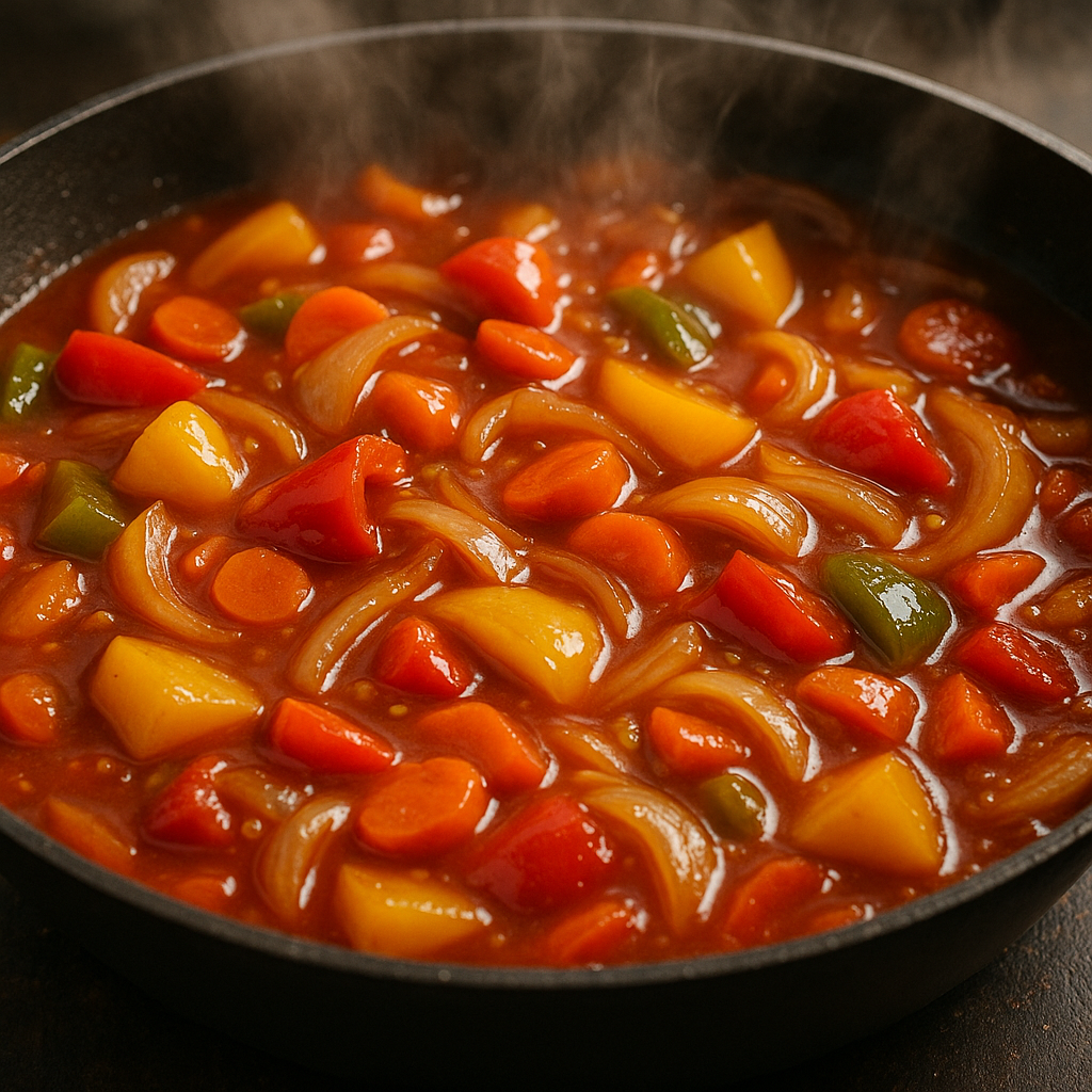 비교 포인트: 중국집 소스는 훨씬 묽고 빨간색이 진하지만, 집 소스는 단맛과 신맛을 취향껏 조절할 수 있다.