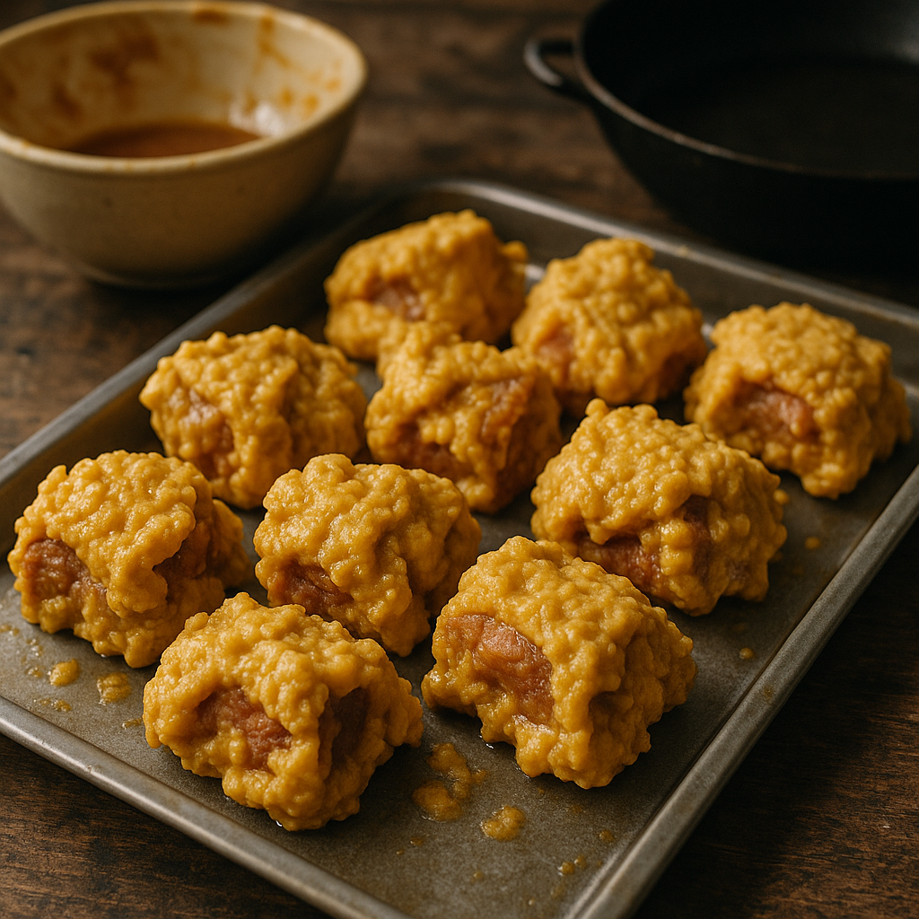 - 고기를 두 번에 나눠 넣고, 중간 불에서 3분, 한 번 건져낸 뒤 식혀 다시 2분 더 튀기면 이중 튀김 완성!