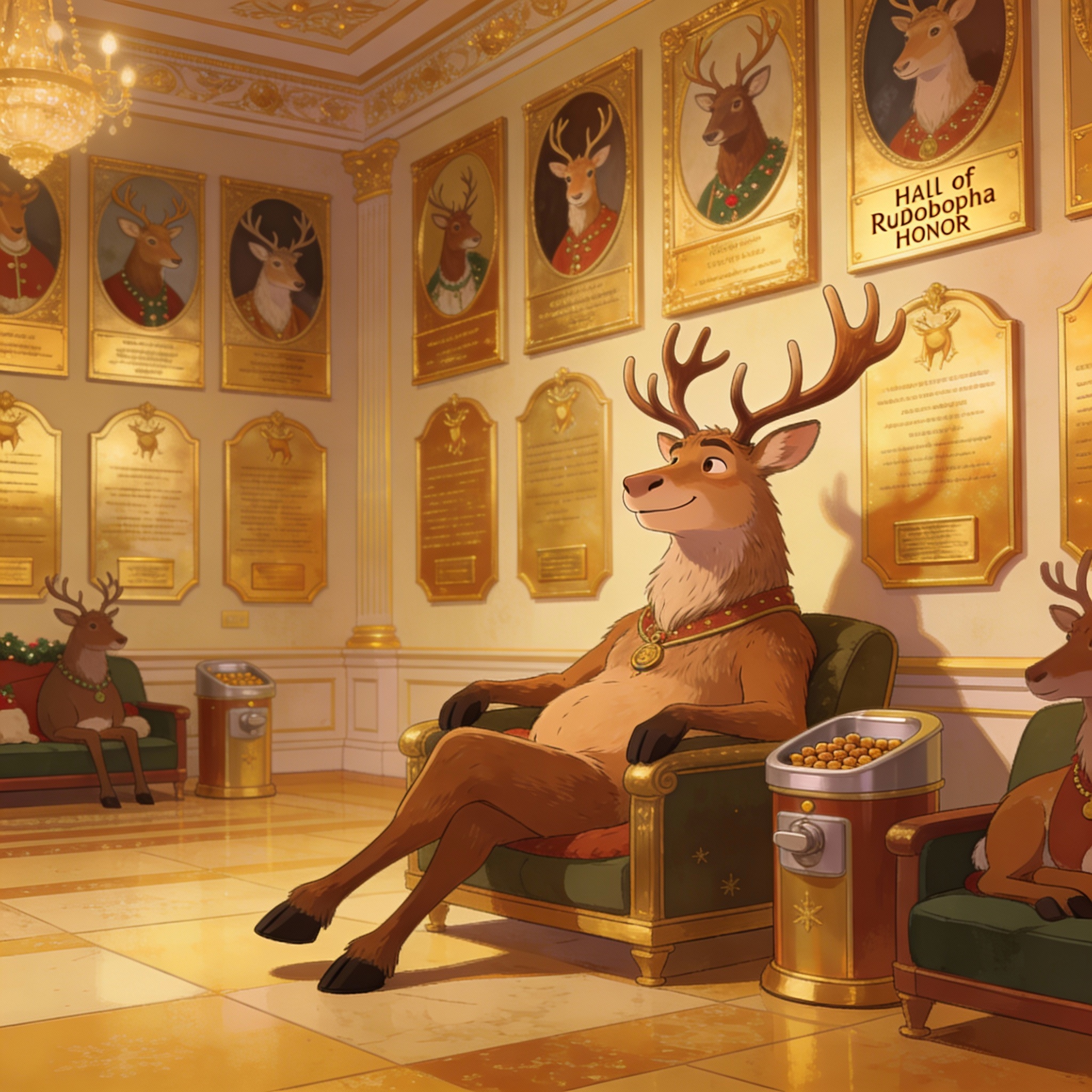 그래서 루돌프는 배달 안 할 때는 **"세계에서 가장 바쁘고, 가장 사랑받는 연예인 순록"**이 되는 거고, 매년 12월 24일만 되면 **"지구를 구하는 영웅"**으로 변신하는 거랍니다!